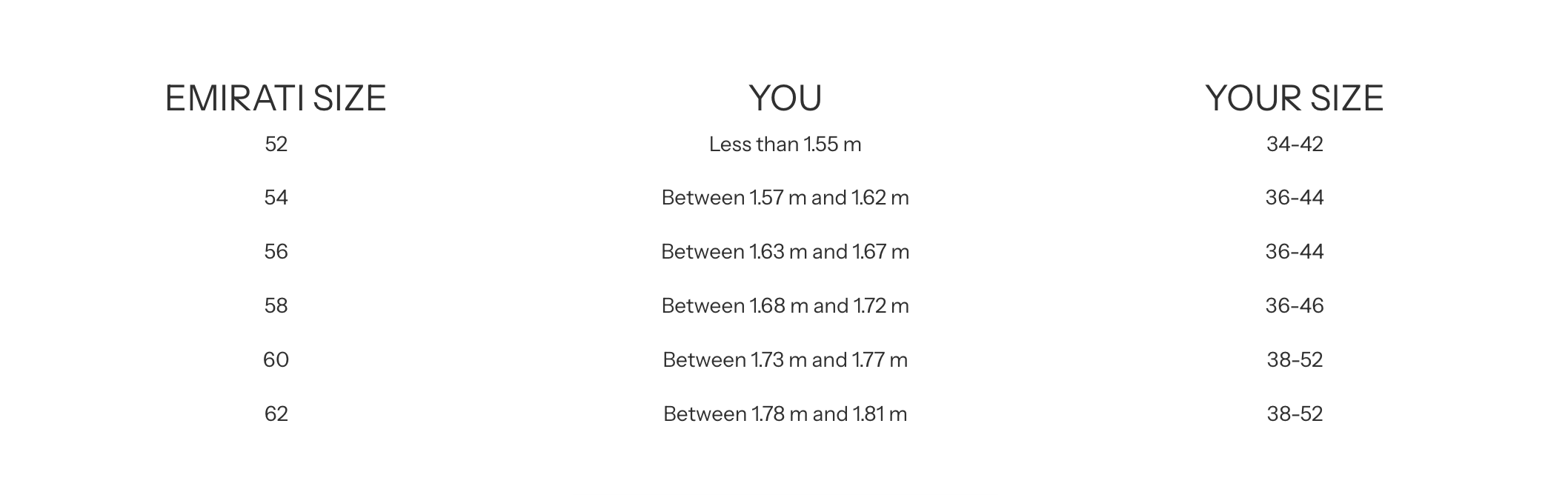 Choose your size according to your height.